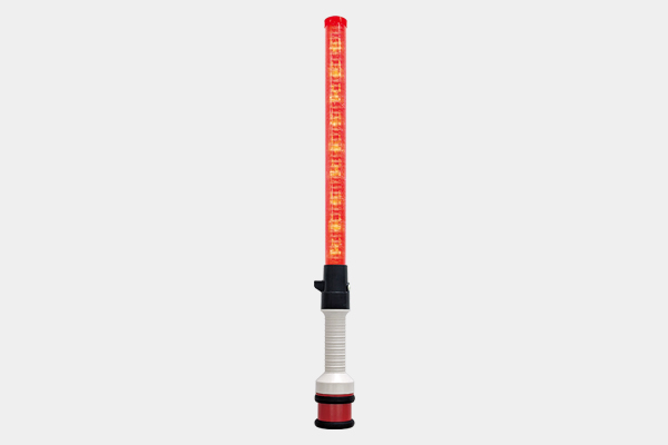 ・棒の部分には、赤色高輝度LEDを使用しているので遠くからでも長い動く光によって視認でき、ドライバーにいち早く工事規制を知らせることができます。